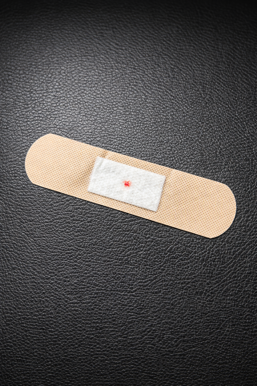 Right in the center of the white bandage was the faintest little dot of red. Barely anything at all — like the sharpened point of a crayon had just touched the surface and disappeared again.